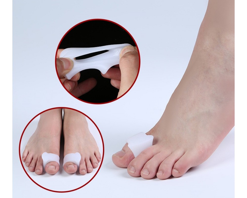 Эти корректоры предназначены для разделения большого и второго пальцев стопы. Они не просто вставляются между пальцев, а надежно крепятся на ноге при помощи силиконового кольца.