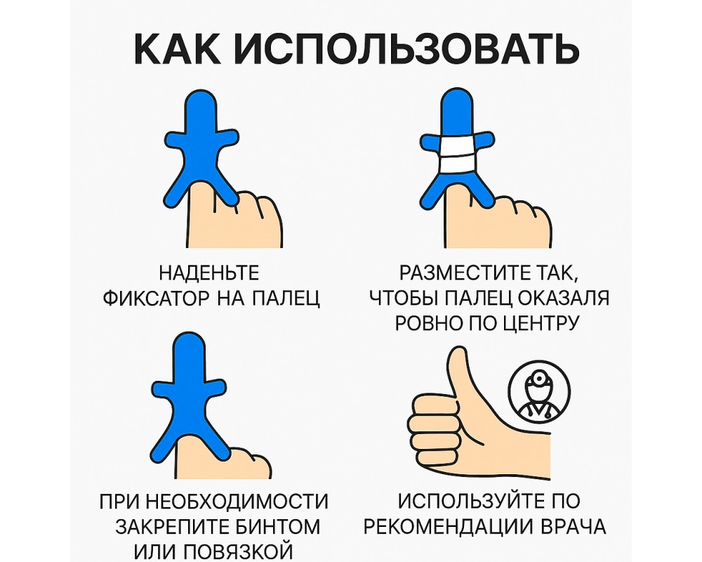 Удобная анатомическая форма бережно фиксирует палец в правильном положении и предотвращает его смещение.