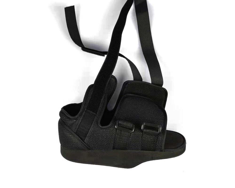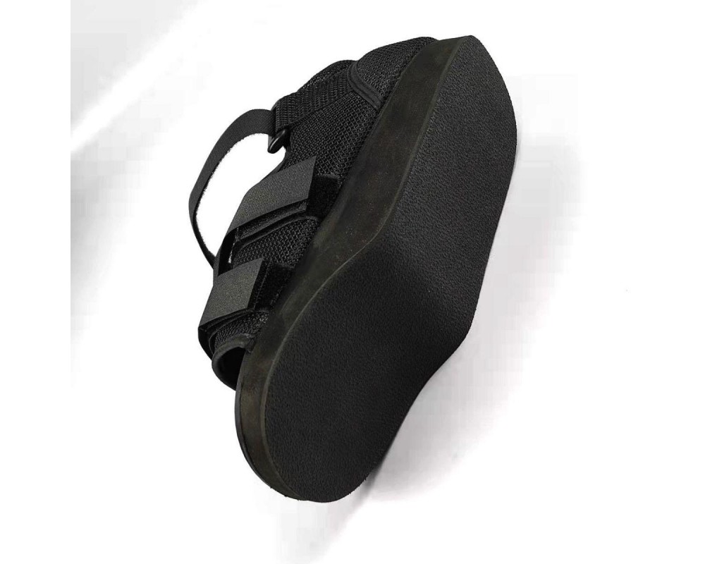 Особенности: специальный широкий крой - подходит для правой и левой ноги, клиновидный срез на подошве в пропорции 60:40, воздухопроницаемый и гипоаллергенный материал, полиуретановая нескользящая подошва и застежки «велкро». Застежки-липучки позволяют регулировать обхват голеностопа в зависимости от потребностей пациента.