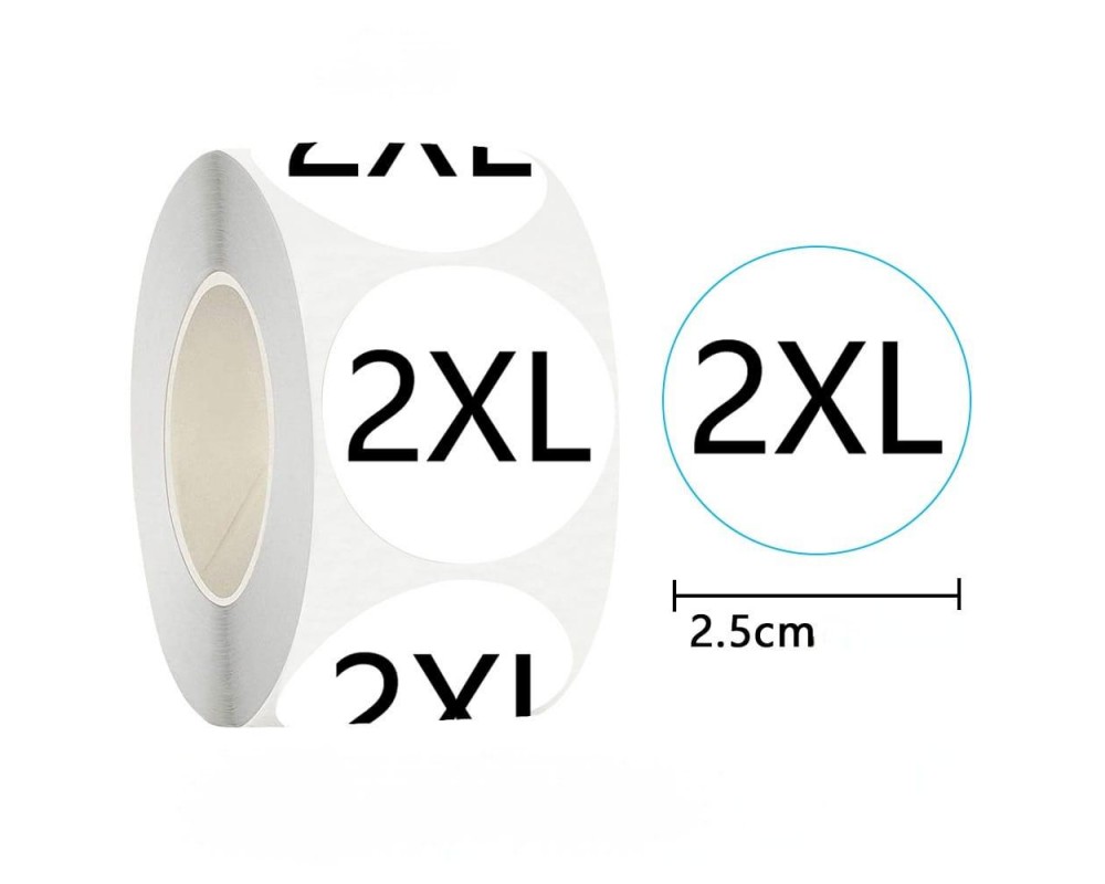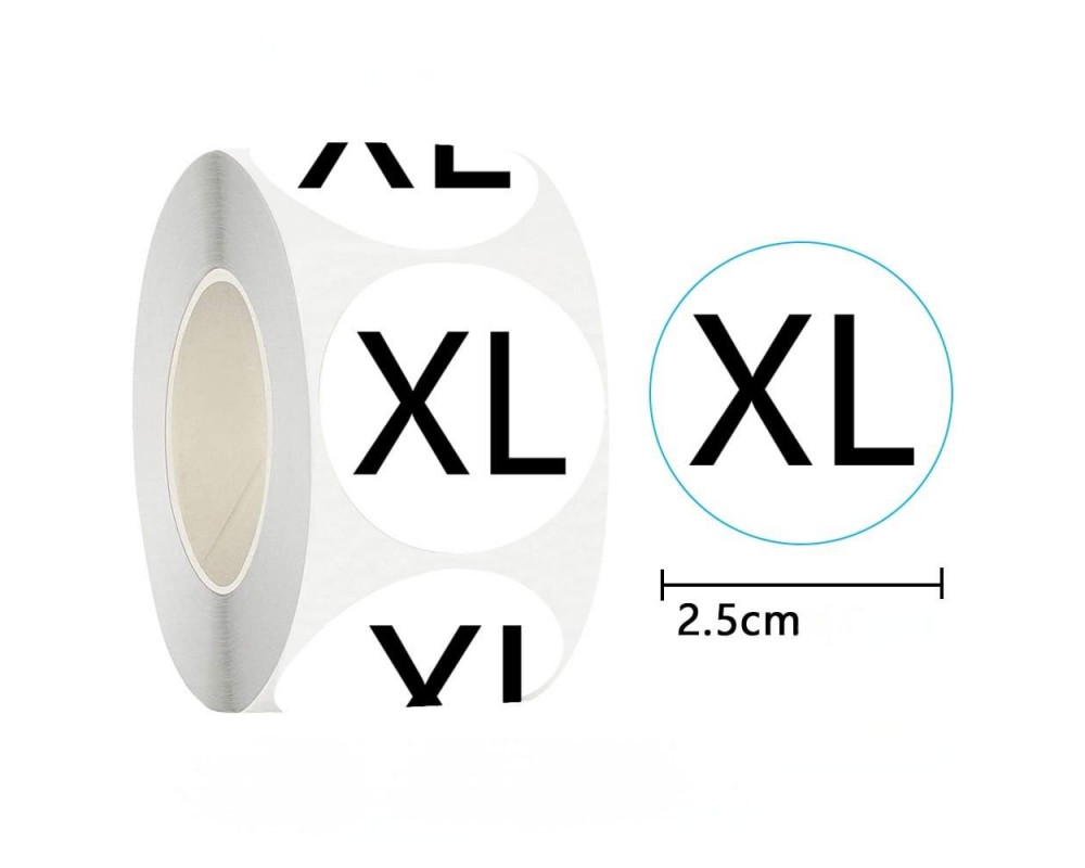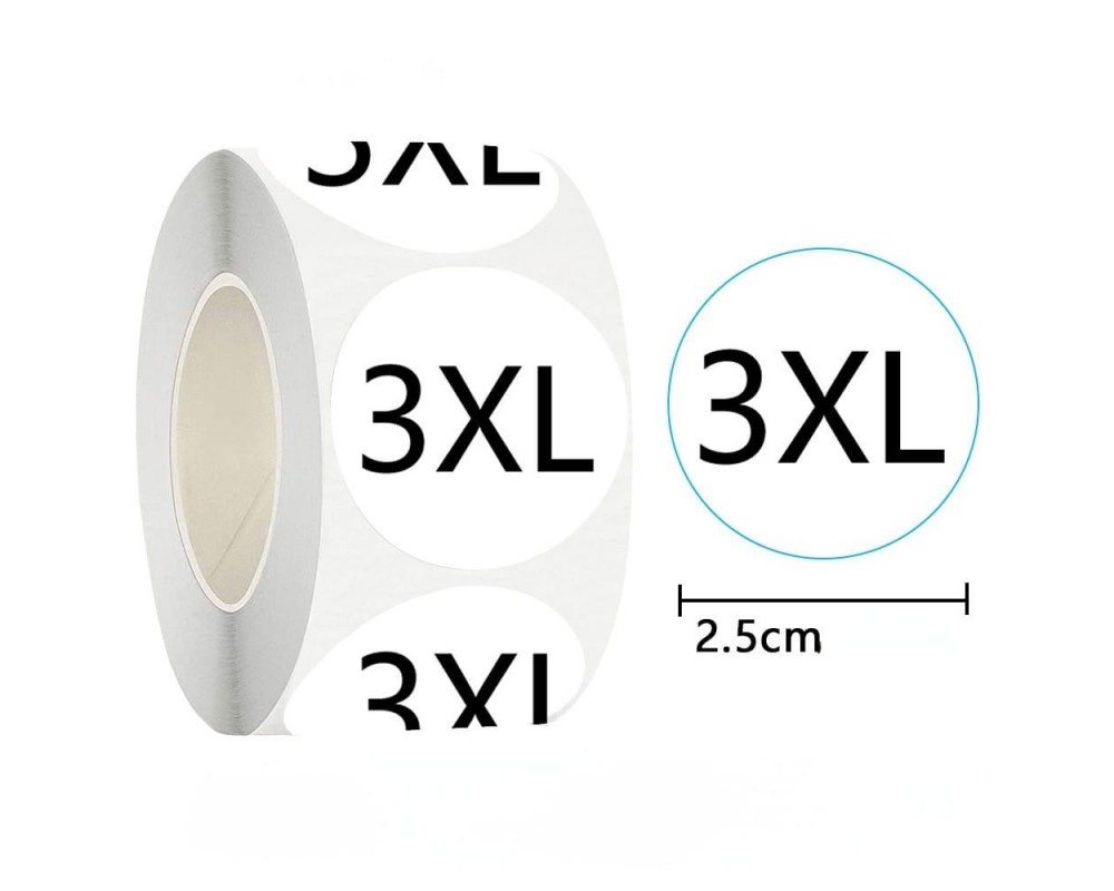 Наклейки для маркировки некоторых видов одежды, вешалок и т.д. Размерники для одежды виниловые XS, S, M, L, XL, 2XL, 3XL, диаметр стикера 2,5 см, форма - круг. Качественные самоклеящаяся размерные этикетки. Подойдет для любого типа одежды, наклейка отлично клеится к текстильным и синтетическим материалам.