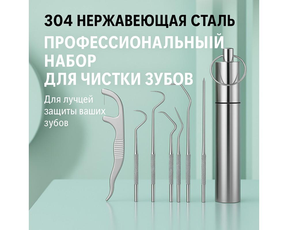 Этот профессиональный стоматологический набор включает 7 инструментов из высококачественной нержавеющей стали 304, обеспечивающих тщательную и безопасную гигиену полости рта. Набор подходит для удаления зубного камня, налета, остатков пищи и для профилактики кариеса.
